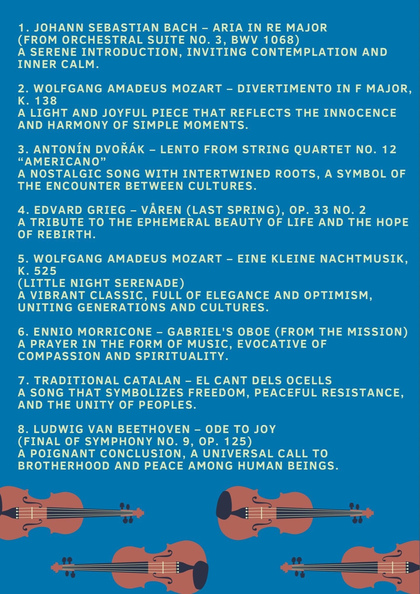Un evento con espíritu institucional pero abierto a todos, donde compartiremos música, compañerismo y compromiso. El aforo es limitado, por lo que será imprescindible confirmar asistencia con antelación. Los fondos recaudados se destinarán a la instalación de un Peace Pole (poste por la paz), que se colocará en el Jardín de Castelldefels la mañana siguiente.